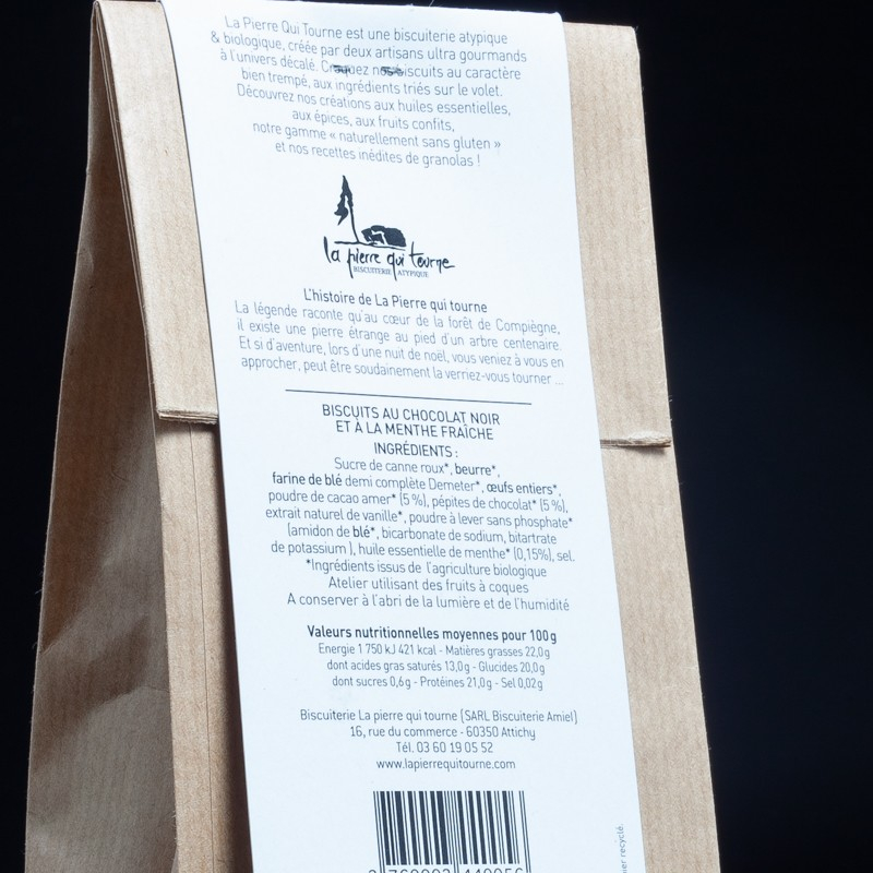 Les biscuits Choco Menthe 140g La Pierre Qui Tourne offrent une expérience gourmande et rafraîchissante, grâce à la parfaite alliance du chocolat noir intense et de la menthe fraîche. Fabriqués de manière artisanale, ces biscuits allient une texture croquante et une saveur équilibrée, où le goût du chocolat se mêle à la fraîcheur vivifiante de la menthe.