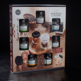 Coffret bar à sels 3x35g Le Comptoir de Mathilde Qté: 3 - Réf : 11229 Le Coffret Bar à Sels 3x35g – Le Comptoir de Mathilde est une sélection raffinée de trois sels aromatisés, présentés dans un coffret design et compact, parfait pour une cuisine créative au quotidien. Chaque petit pot contient un sel de caractère, aux saveurs originales et gourmandes, comme :... 1 Prix 10,29 € 1 Se connecter pour ajouter à la liste d'achats