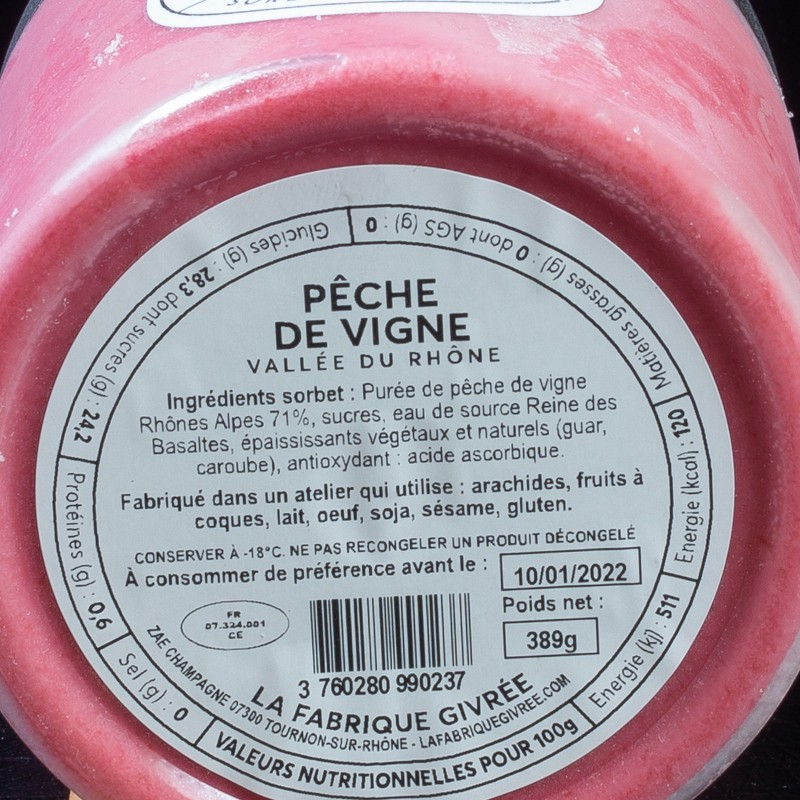 Glace pêche de vigne La Fabrique Givrée 600ml